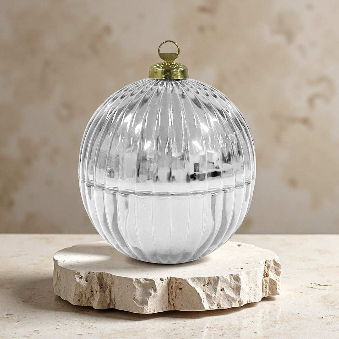 Order now and elevate your holiday experience with our Silver Christmas Bauble Candle!